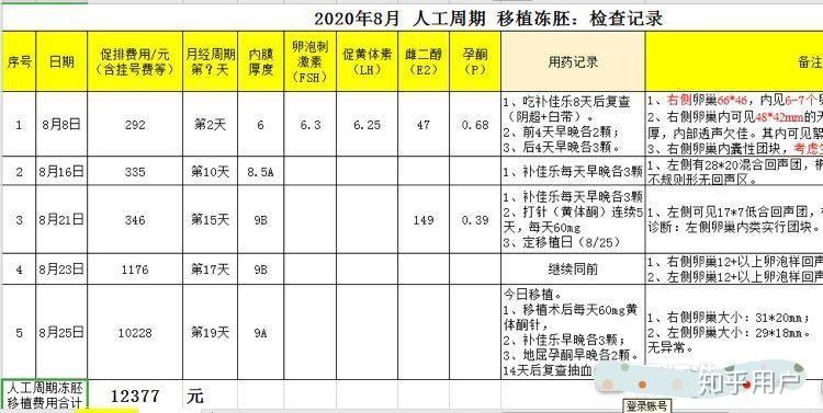 d.取卵二次月經后,移植凍胚進周,加上移植當天,共去醫院5次。(進周第3次去醫院可定移植日。月經第19天移植的。)