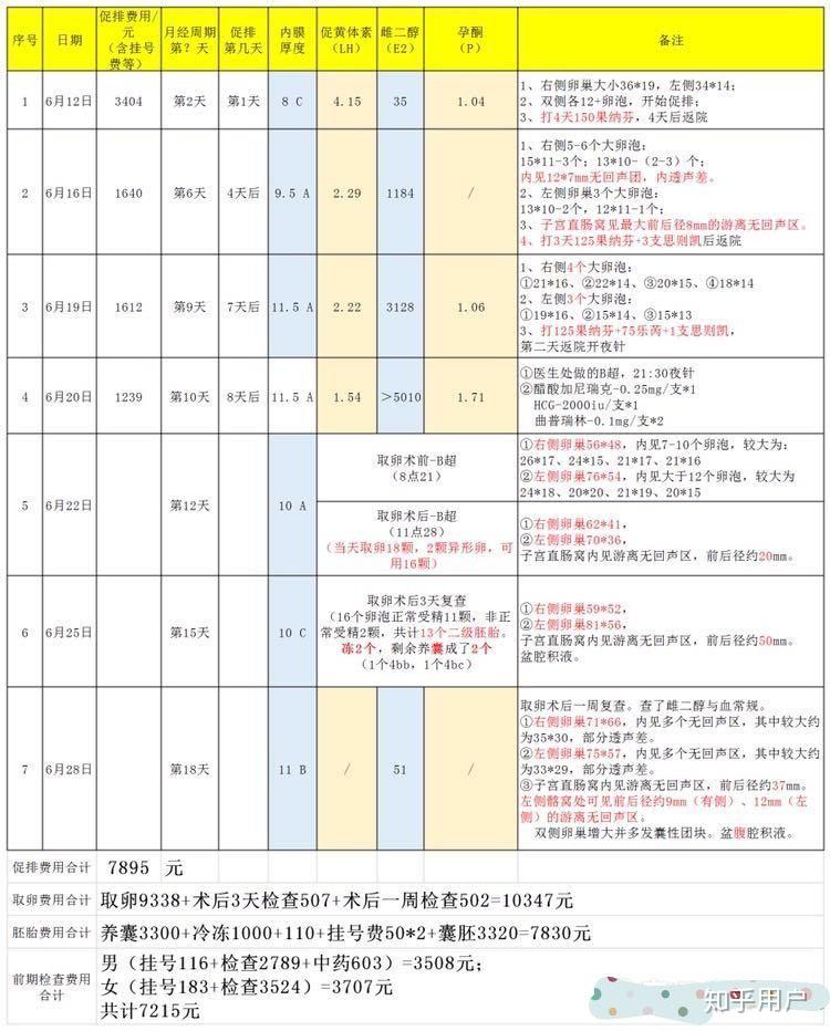 a.前期檢查費用是7215元(男3508?女3707)。 b.促排8天費用合計7895元。